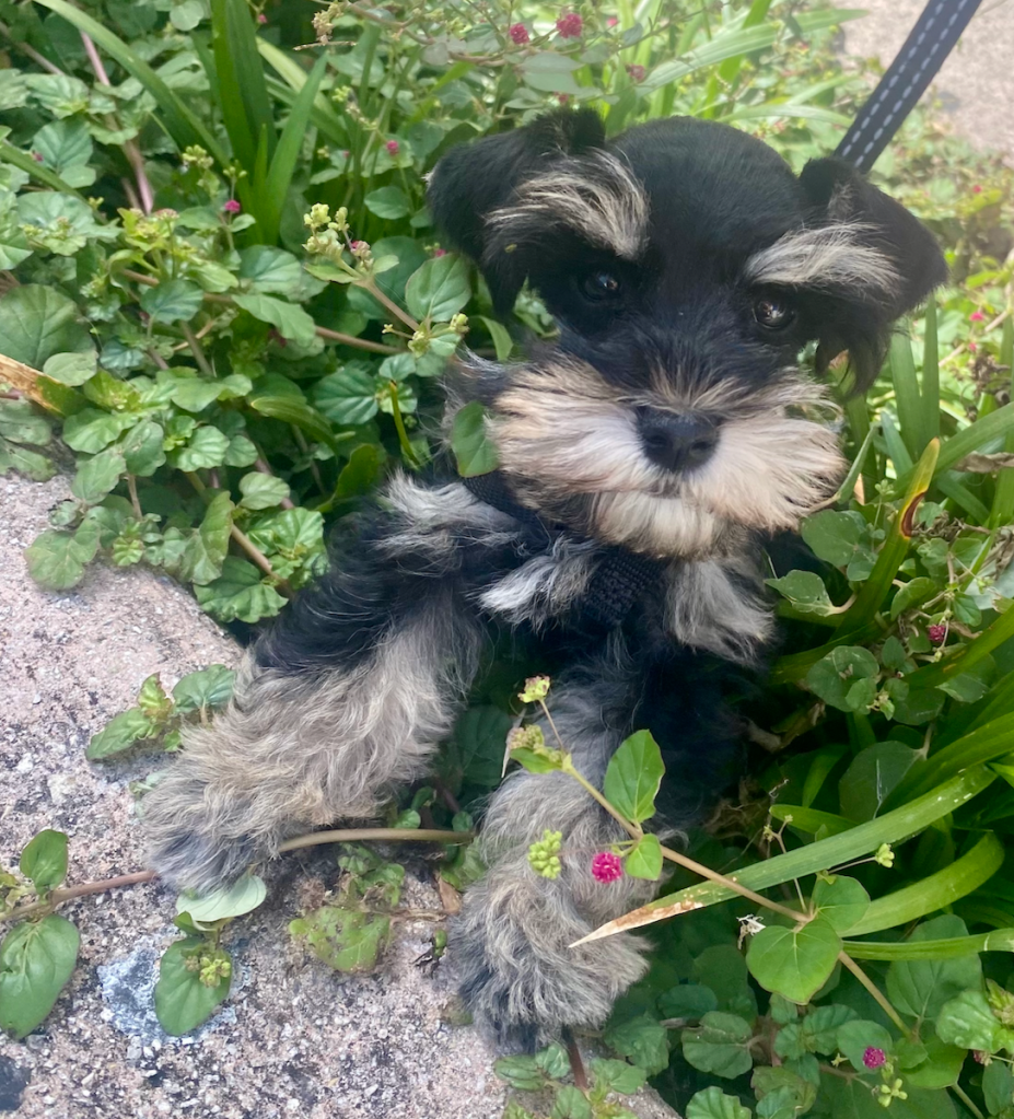 I live in New York with my mini schnauzer, Mora, whom I love very much.
